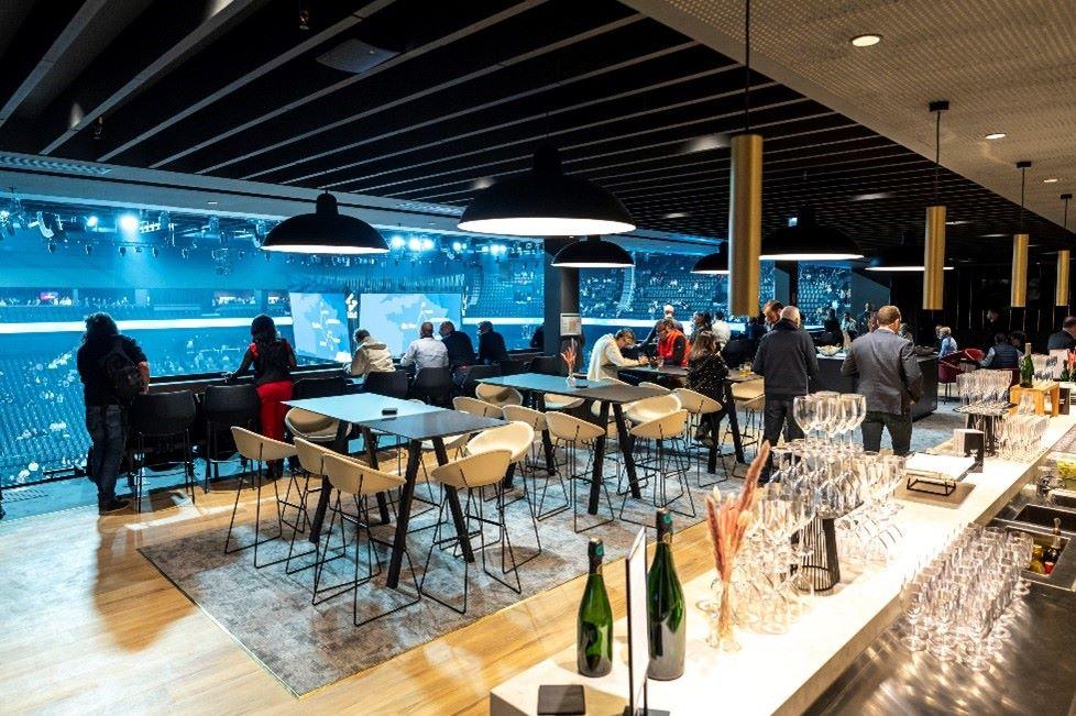 • Un bar sera à votre disposition grâce à un accès direct depuis votre siège en tribu